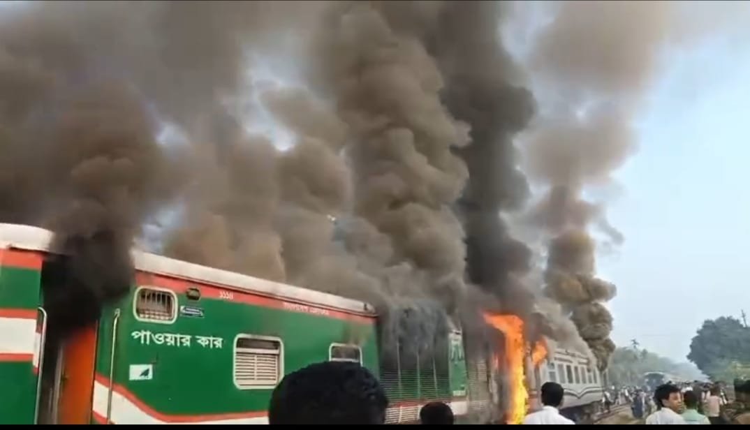 কাল পৌনে ৬টার দিকে চলন্ত ট্রেনে এই অগ্নিকান্ডের ঘটনা ঘটে